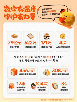 1月30日,平安健康险正式发布2025年理赔年度报告。报告显示,过去一年,平安健康险累计理赔案件达622万,理赔客户171万人,赔付总金额达79亿元,人均赔付4次,单客户最多理赔 104 次,单客户最高赔付金额456万元。其中,最快理赔仅需3秒,实现了理赔效率的再提速,单客户最长赔付年限跨越17年,见证了治疗周期中的持续守护,赔付年龄跨度从13天到103岁,实现了全生命周期的保障覆盖。